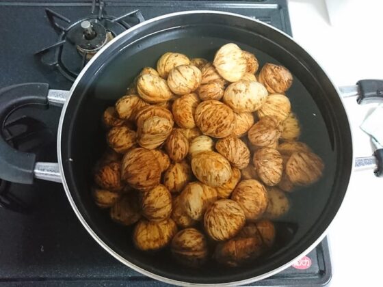 あまり長く煮ると、鬼皮だけでなく、中まで火が通ります。これはNGです。