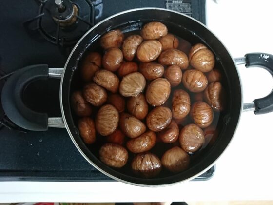 栗の大きさにもよりますが、大きめの栗で沸騰後、4分前後。