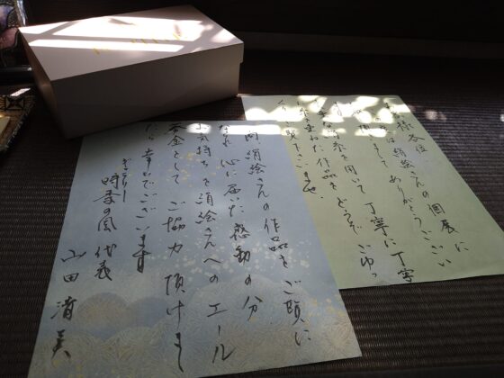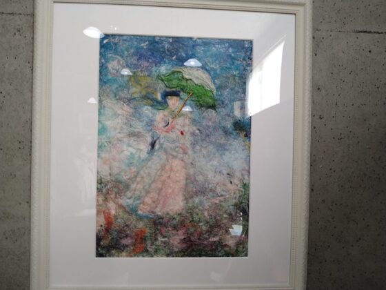 白石よし子 さんによる絹糸アート個展での作品たち。