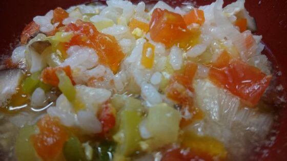 冷蔵庫の残り野菜を刻んで熱々雑炊♪